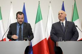 Si tratta, spiega, "di una decisione che non ha senso, non ho capito questa accelerazione. Serve un chiarimento che ci sarà questa sera al mio ritorno". "Io sono il ministro che si occupa di pubblica sicurezza però non controllo ancora lo spazio aereo... Io ho il controllo dei porti. Magari arriveranno in Italia in parapendio...". Ha detto Matteo Salvini con malcelata irritazione, in conferenza stampa a Varsavia dove èin visita. (nella foto con l'omologo polacco Joachim Brudzinski)